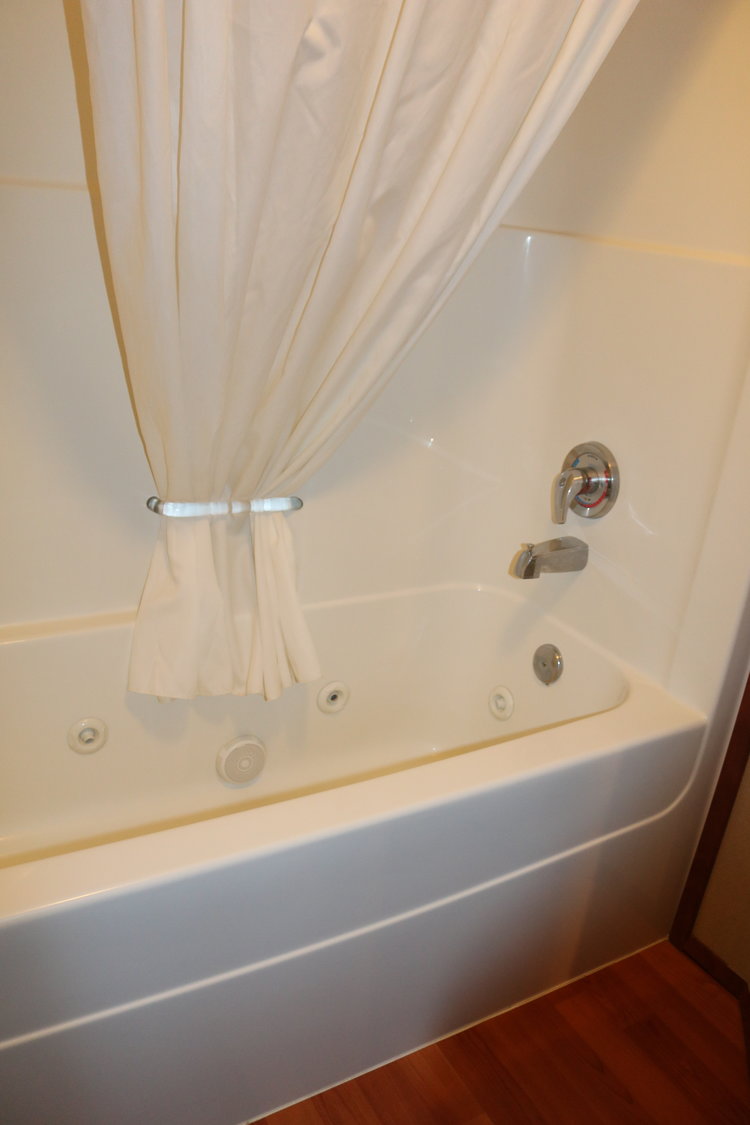 The bathroom either has a stand-alone shower, tub and shower, or jacuzzi tub and shower.